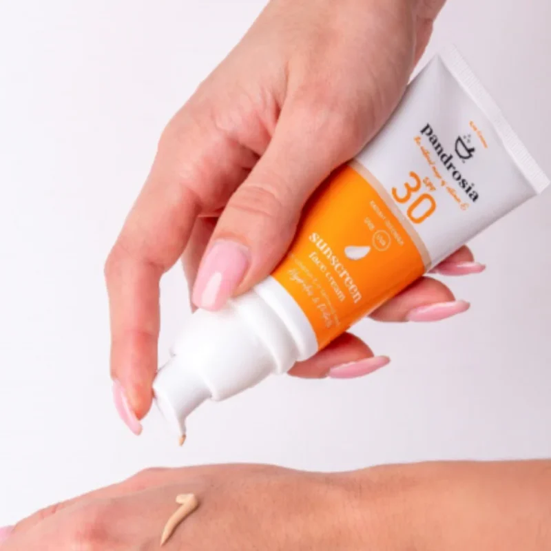 PANDROSIA Αντηλιακό προσώπου SPF50 50ml με υψηλό δείκτη προστασίας. Προστατεύει από ακτινοβολίες UVA, UVB. Η βιταμίνη Ε, οι φυσικοί πολυσακχαρίτες, τα αμινοξέα και η ουρία που περιέχει, βελτιώνουν την υφή της επιδερμίδας και την κάνουν πιο ελαστική. Ο συνδυασμός των αντηλιακών φίλτρων και των ενυδατικών παραγόντων ενυδατώνει & προστατεύει από τη φωτογήρανση. Περιέχει αλόη για βαθιά ενυδάτωση & καταπραϋντική δράση.