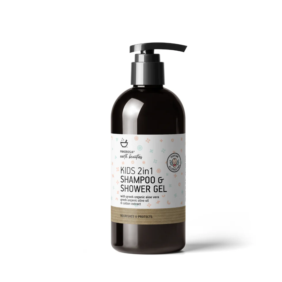 PANDROSIA Earth Beauties για Παιδιά 2 σε 1 Σαμπουάν & Αφρόλουτρο με βιολογική αλόη, βιολογικό λάδι ελιάς και βαμβάκι 300ml