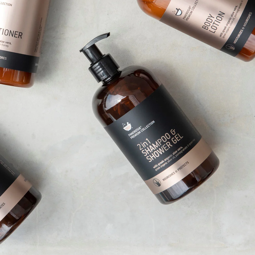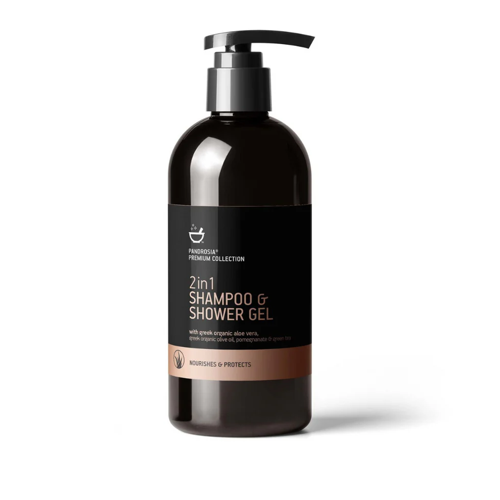 PANDROSIA Greek Treasures Σαμπουάν – Αφρόλουτρο, 2 σε 1 με βιολογική αλόη, βιολογικό λάδι ελιάς, ρόδι & πράσινο τσάι 500ml